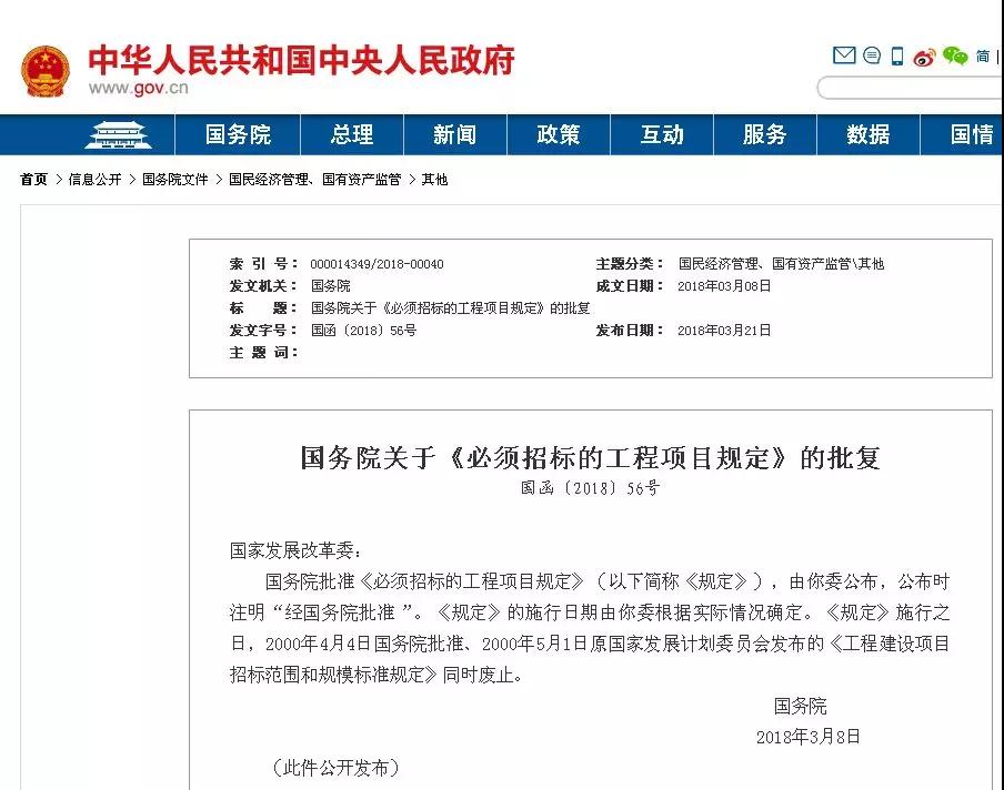 第四條 不屬于本規(guī)定第二條、第三條規(guī)定情形的大型基礎(chǔ)設(shè)施、公用事業(yè)等關(guān)系社會公共利益、公眾安全的項目,必須招標的具體范圍由國務(wù)院發(fā)展改革部門會同國務(wù)院有關(guān)部門按照確有必要、嚴格限定的原則制訂,報國務(wù)院批準。